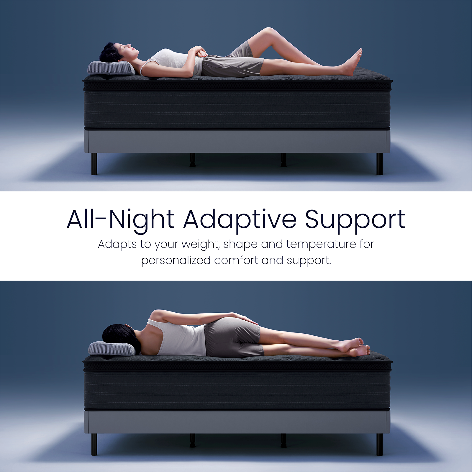 - Self-Developed Cool Fabric – Cool to the touch, crafted for breathable comfort all night. Our knit cover feels cool from the moment you lie down, woven with breathable cooling fibers that boost softness and airflow. It creates a breathable microclimate that wicks warmth away with every shift, actively moving excess heat from your body to keep you cool, comfortable, and perfectly rested.